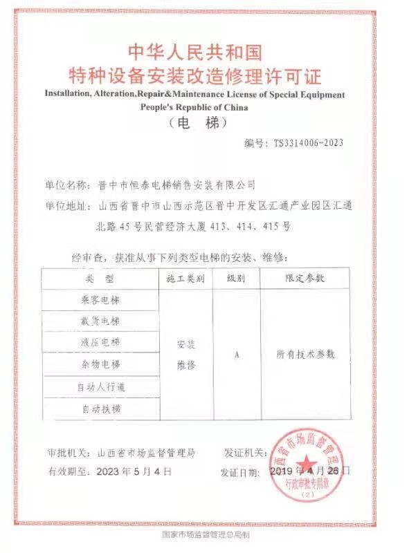 版權(quán)所有:晉中市恒泰電梯銷售安裝有限公司    電話:0354-3073280